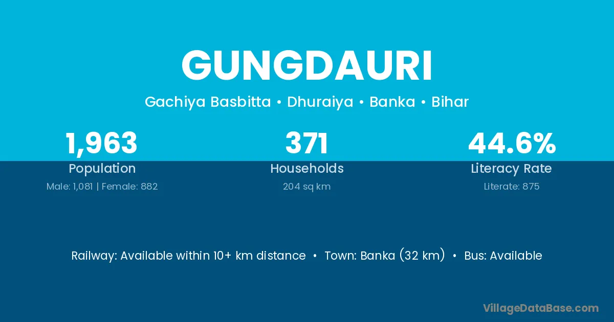 Banka (32 km) is the nearest town to Gungdauri village for major economic activities and is located approximately 32 km away.