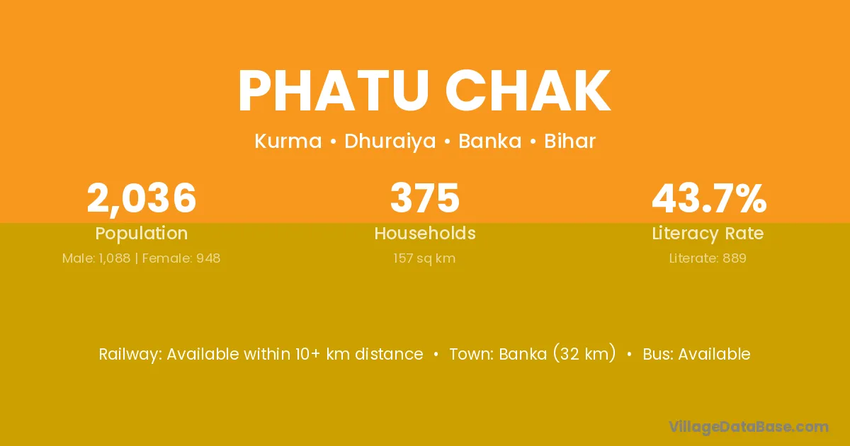 Banka (32 km) is the nearest town to Phatu Chak village for major economic activities and is located approximately 32 km away.