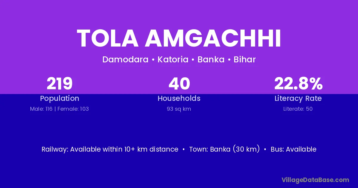 Tola Amgachhi village has a total population of 219 people, of which 116 are males and 103 are females.