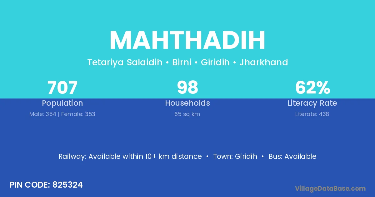 Phulidumar is the nearest town to Mahthadih village for major economic activities