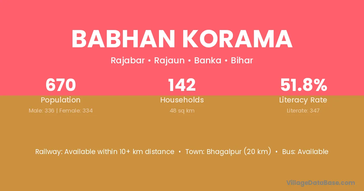 Babhan Korama village has a total population of 670 people, of which 336 are males and 334 are females.