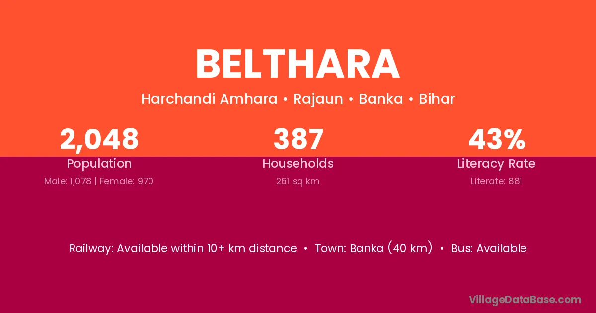 Banka (40 km) is the nearest town to Belthara village for major economic activities and is located approximately 40 km away.