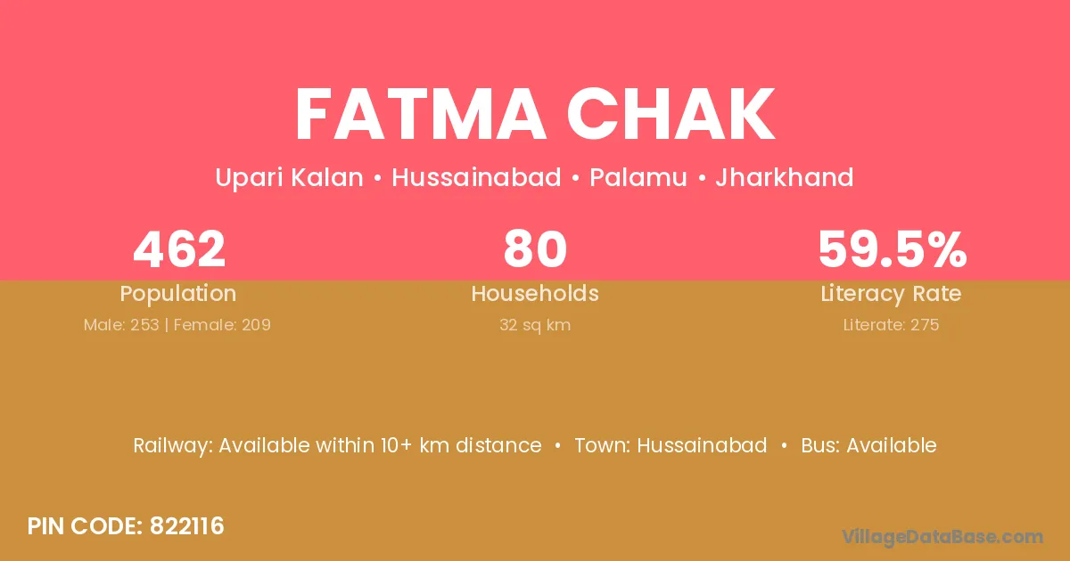 Bhagalpur (16 km) is the nearest town to Fatma Chak village for major economic activities and is located approximately 16 km away.