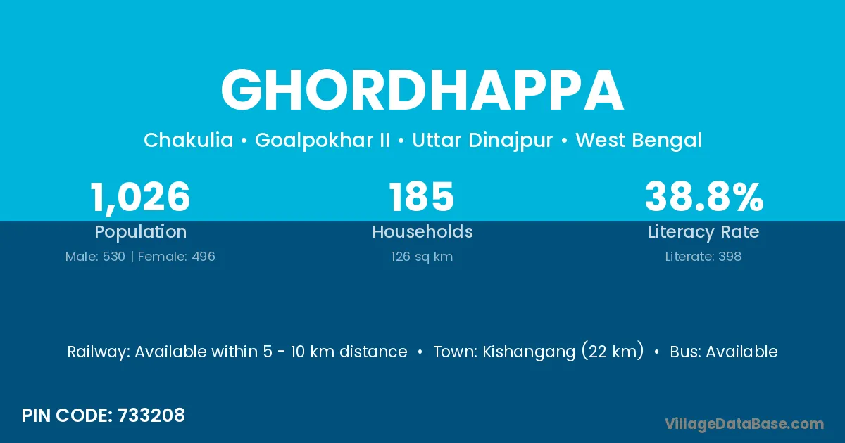 Bhagalpur (18 km) is the nearest town to Ghordhappa village for major economic activities and is located approximately 18 km away.