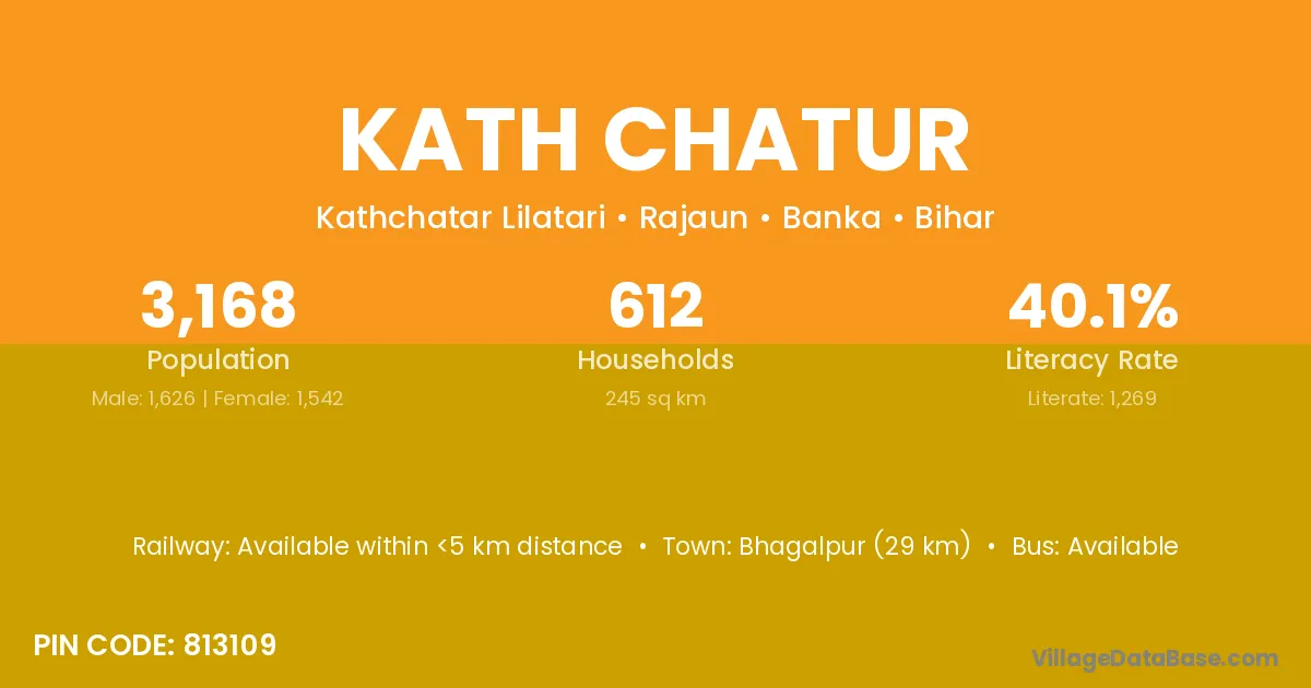 Bhagalpur (29 km) is the nearest town to Kath Chatur village for major economic activities and is located approximately 29 km away.