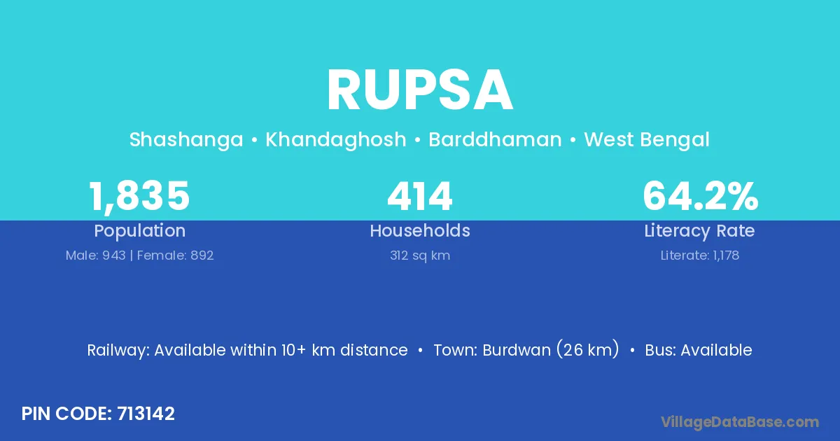 According to Census 2011 information, the village code of Rupsa village is 813107.