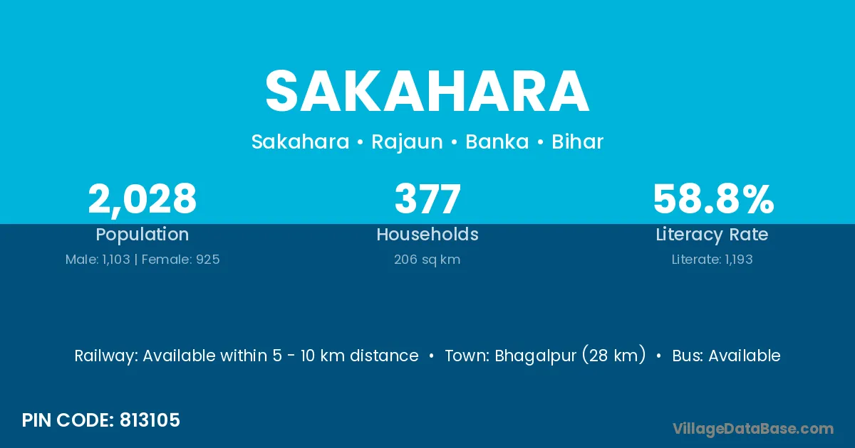 Bhagalpur (28 km) is the nearest town to Sakahara village for major economic activities and is located approximately 28 km away.