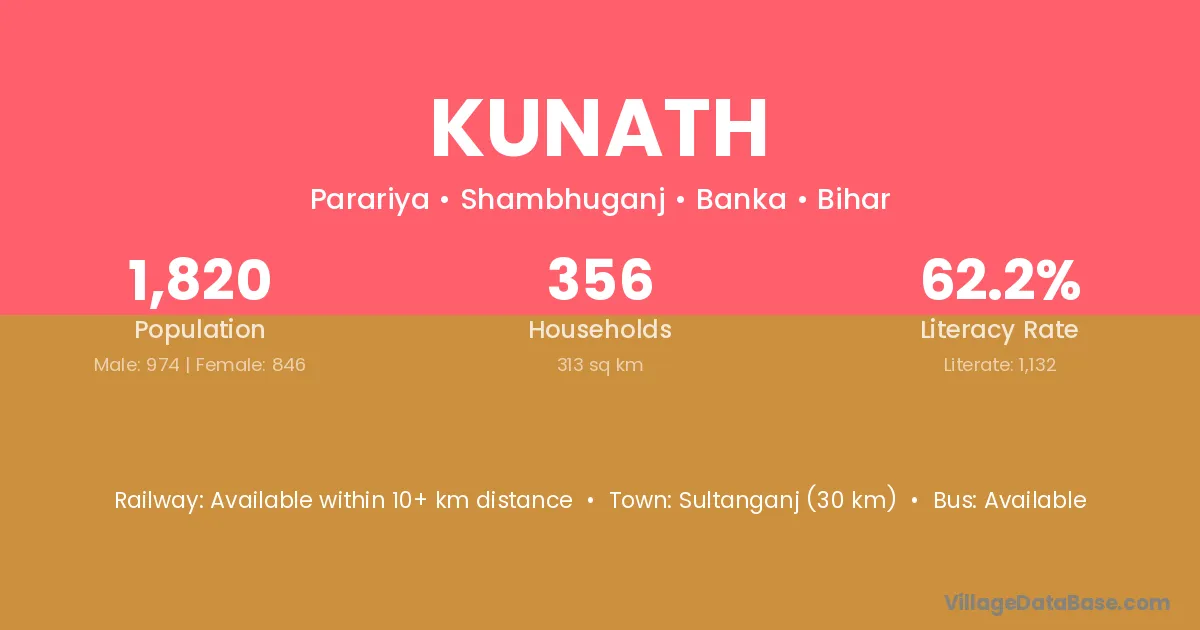 Sultanganj (30 km) is the nearest town to Kunath village for major economic activities and is located approximately 30 km away.