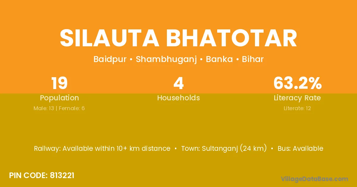 Silauta Bhatotar village has a total population of 19 people, of which 13 are males and 6 are females.