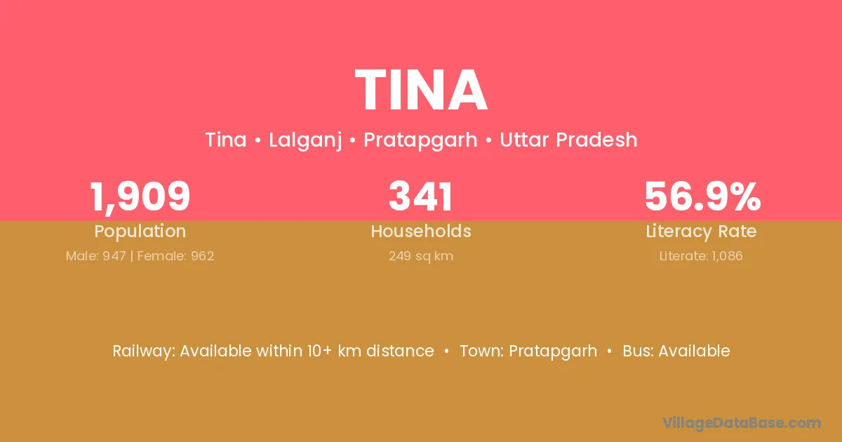 The literacy rate of Tina village is 42.21%. Male literacy stands at 51.97% and female literacy at 31.39%.
