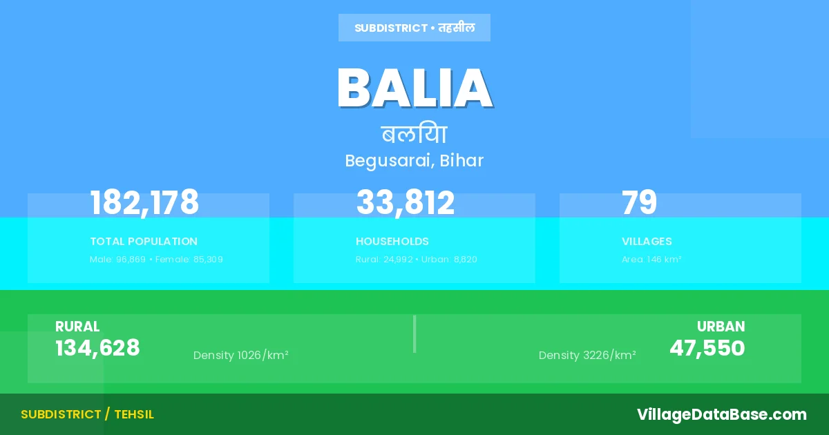 Balia is a town and Subdivision in the Begusarai district of the Bihar. In India, a Subdivision is a subdivision of a district responsible for the administration and revenue collection of a specific area within the district. Subdivisions play a crucial role in the local governance structure, contributing significantly to the development and administration of their communities.