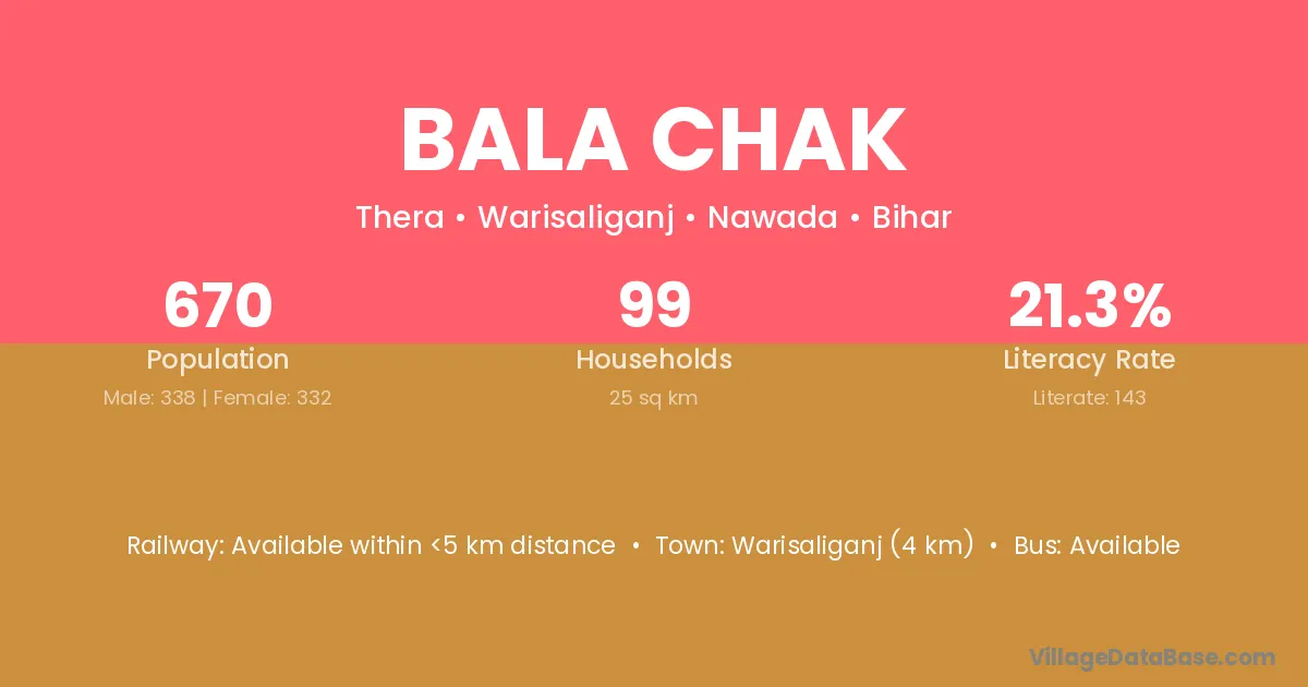 Balia (3 km) is the nearest town to Bala Chak village for major economic activities and is located approximately 3 km away.