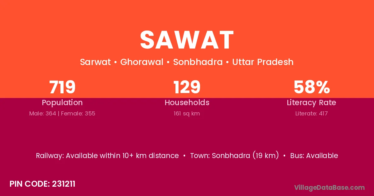 Rosera (11 km) is the nearest town to Sawat village for major economic activities and is located approximately 11 km away.