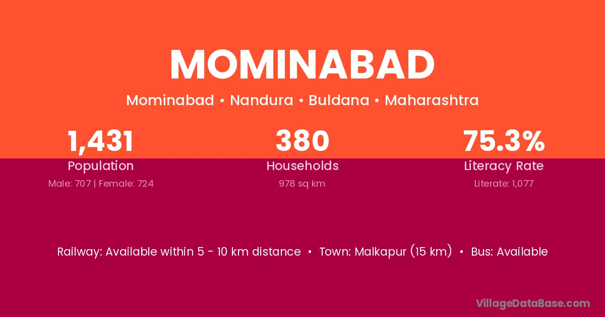 The literacy rate of Mominabad village is 56.43%. Male literacy stands at 69.01% and female literacy at 43.48%.