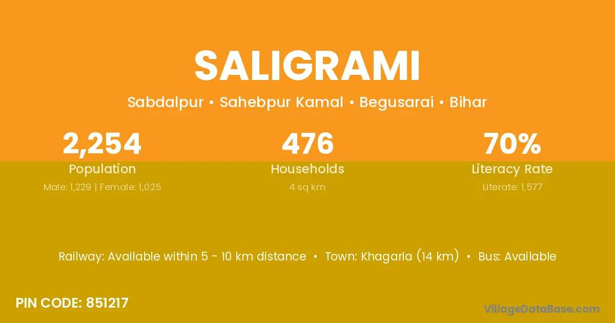 Khagaria (14 km) is the nearest town to Saligrami village for major economic activities and is located approximately 14 km away.