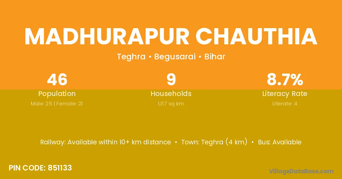 Teghra (4 km) is the nearest town to Madhurapur Chauthia village for major economic activities and is located approximately 4 km away.
