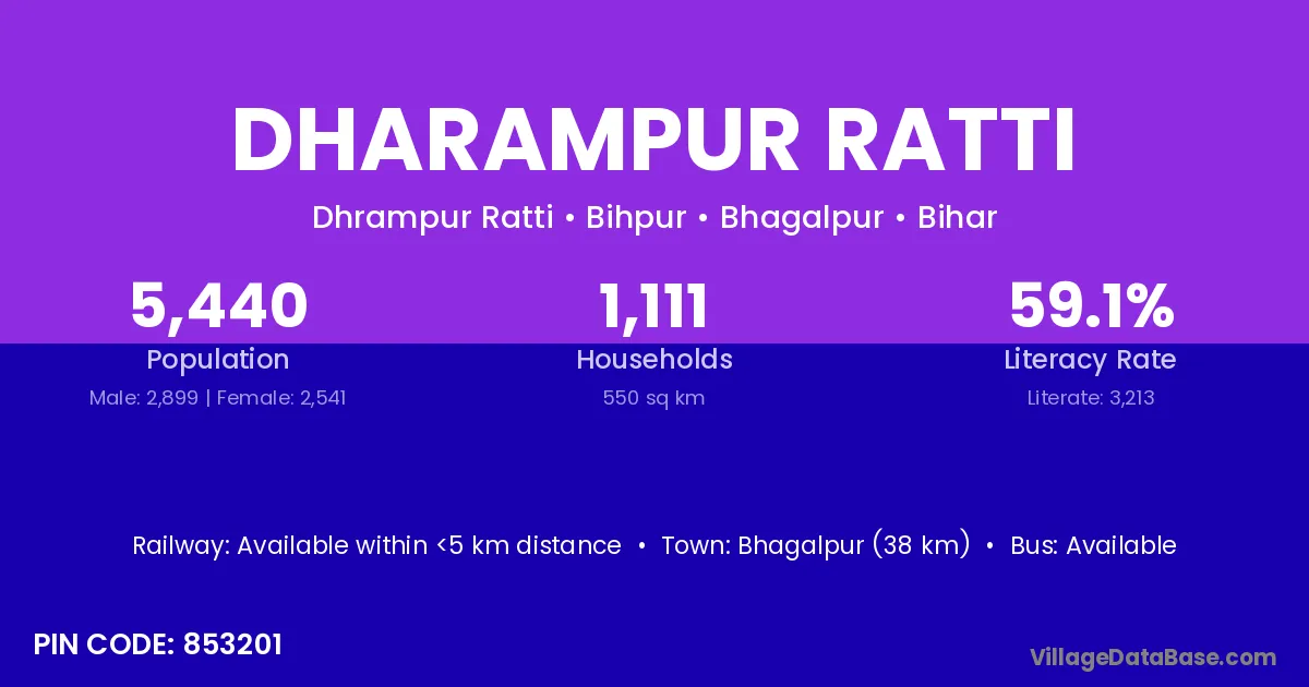 Bhagalpur (38 km) is the nearest town to Dharampur Ratti village for major economic activities and is located approximately 38 km away.