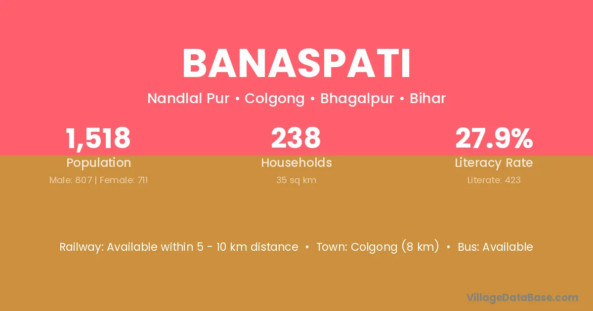 Colgong (8 km) is the nearest town to Banaspati village for major economic activities and is located approximately 8 km away.