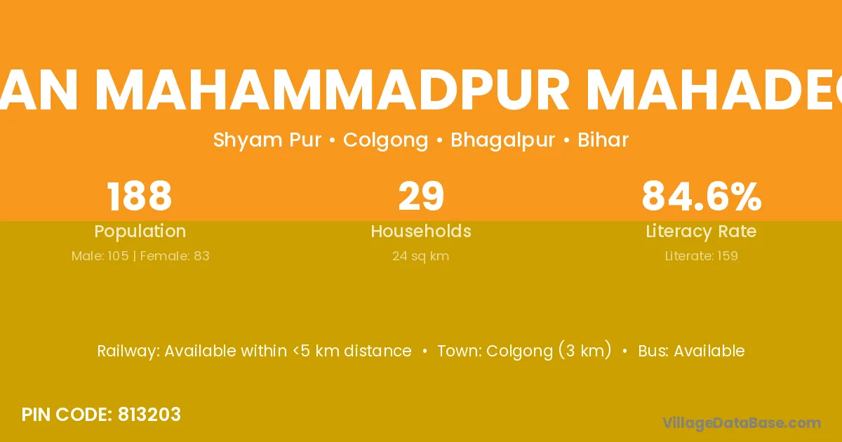 Colgong (3 km) is the nearest town to Jan Mahammadpur Mahadeo village for major economic activities and is located approximately 3 km away.