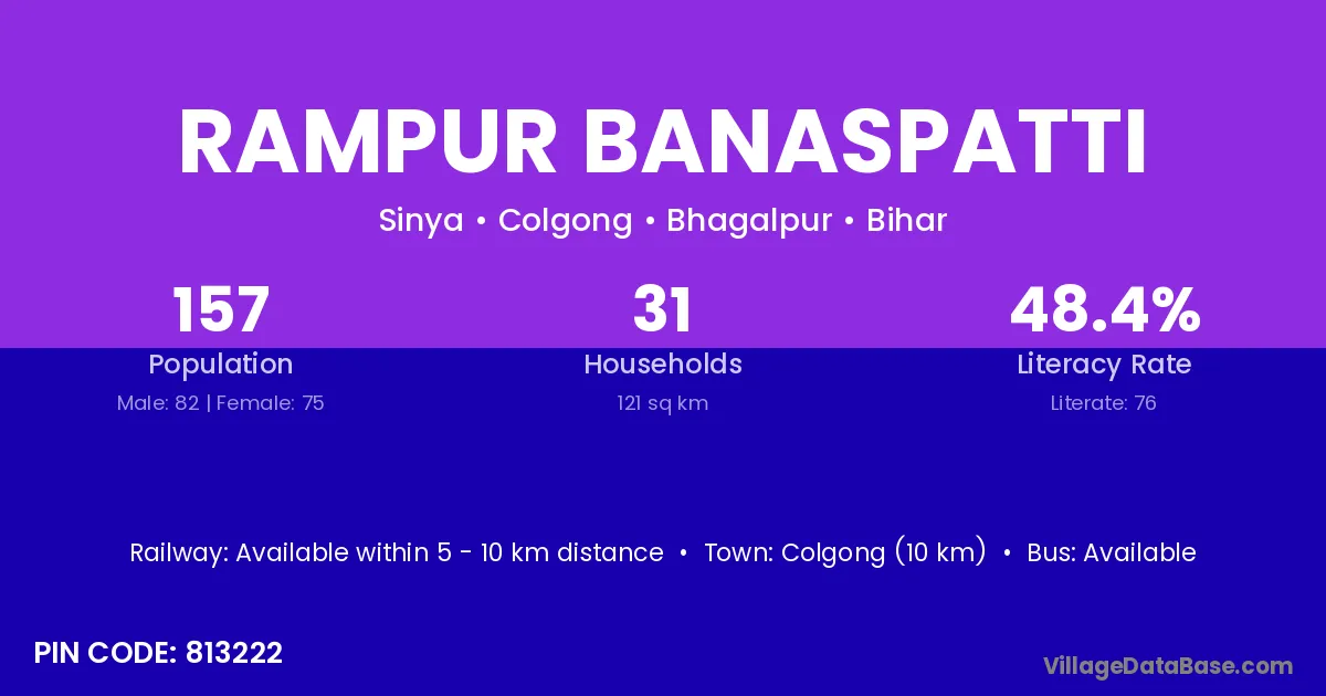 Colgong (10 km) is the nearest town to Rampur Banaspatti village for major economic activities and is located approximately 10 km away.