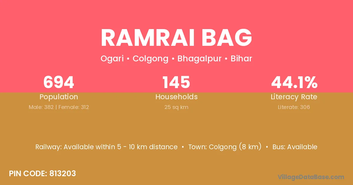 Colgong (8 km) is the nearest town to Ramrai Bag village for major economic activities and is located approximately 8 km away.