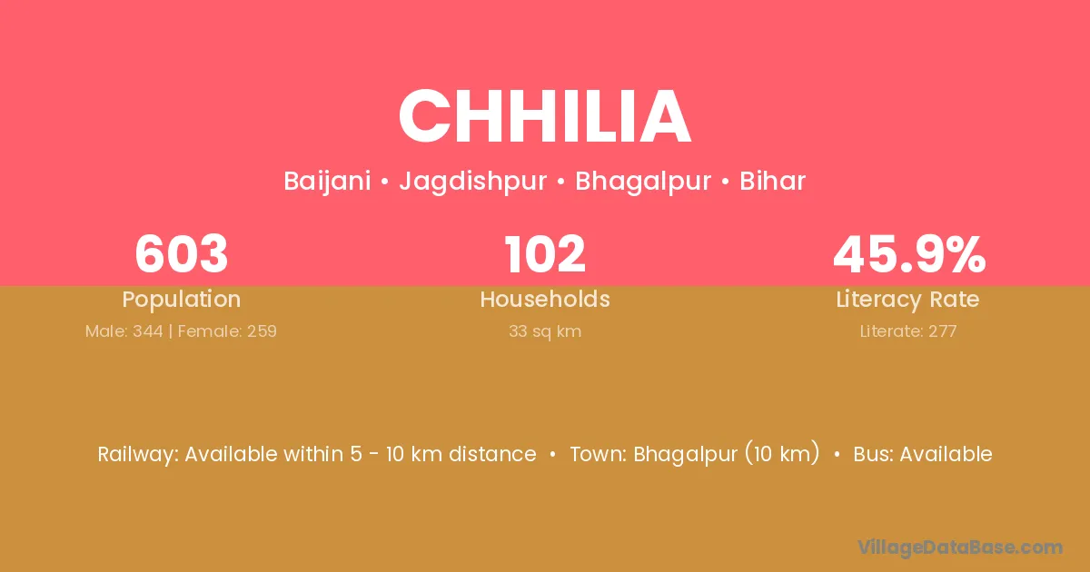 Bhagalpur (10 km) is the nearest town to Chhilia village for major economic activities and is located approximately 10 km away.