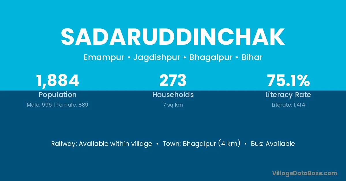 Bhagalpur (4 km) is the nearest town to Sadaruddinchak village for major economic activities and is located approximately 4 km away.
