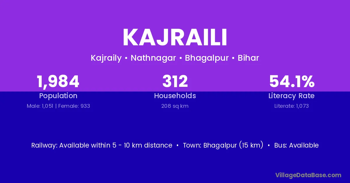 Bhagalpur (15 km) is the nearest town to Kajraili village for major economic activities and is located approximately 15 km away.