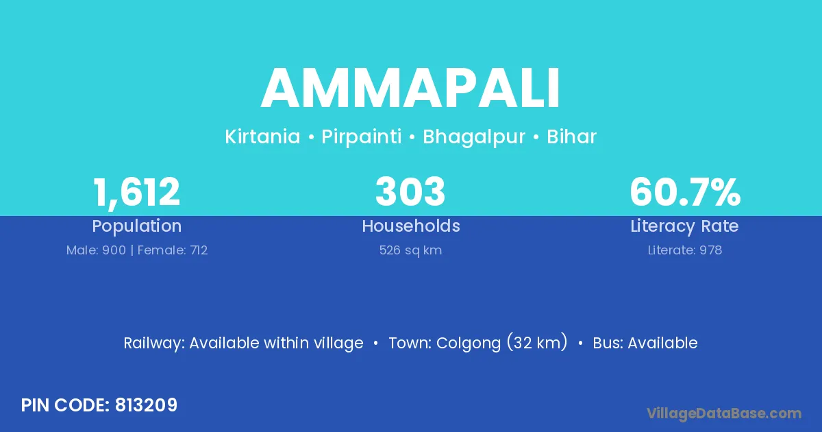 Colgong (32 km) is the nearest town to Ammapali village for major economic activities and is located approximately 32 km away.