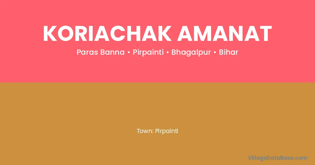 Koriachak Amanat village is located in the Pirpainti Subdivision of the Bhagalpur district in Bihar .