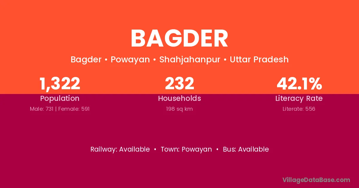 Bhagalpur (12 km) is the nearest town to Bagder village for major economic activities and is located approximately 12 km away.