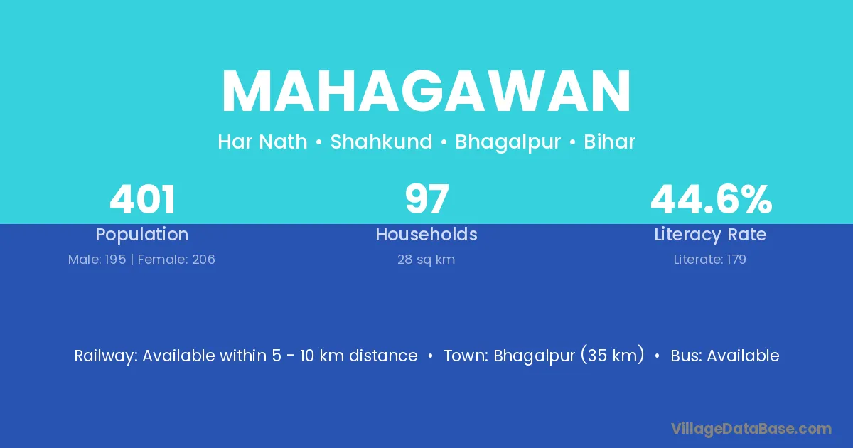 Bhagalpur (35 km) is the nearest town to Mahagawan village for major economic activities and is located approximately 35 km away.