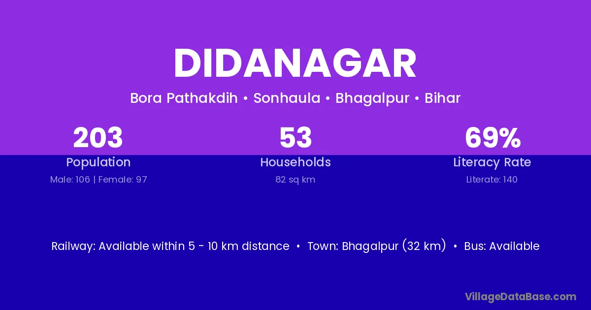 Bhagalpur (32 km) is the nearest town to Didanagar village for major economic activities and is located approximately 32 km away.