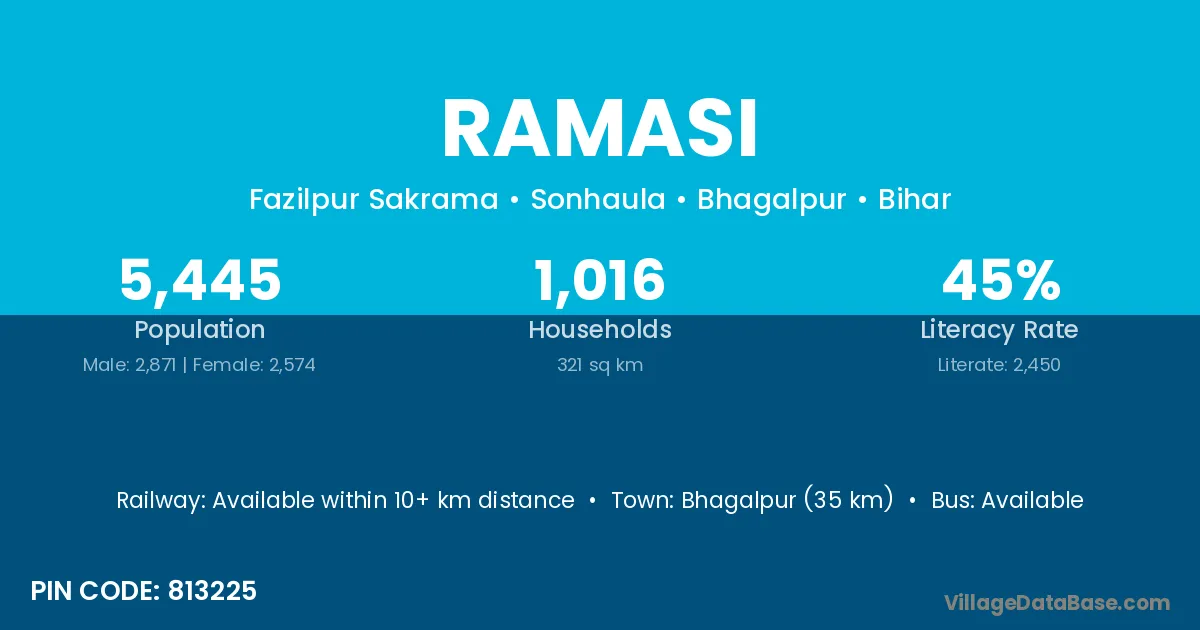 Bhagalpur (35 km) is the nearest town to Ramasi village for major economic activities and is located approximately 35 km away.