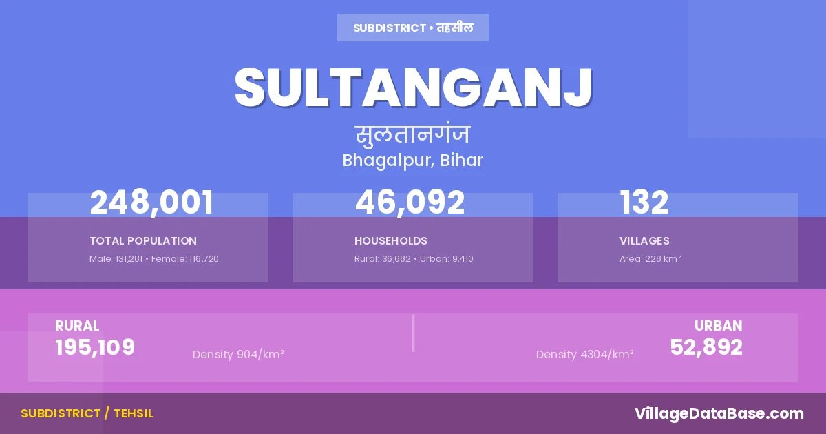 Sultanganj Subdivision comprises about 132 villages. Below is a list of these villages along with information about their respective gram panchayats and the nearest town: