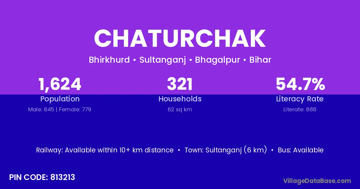 Sultanganj (6 km) is the nearest town to Chaturchak village for major economic activities and is located approximately 6 km away.