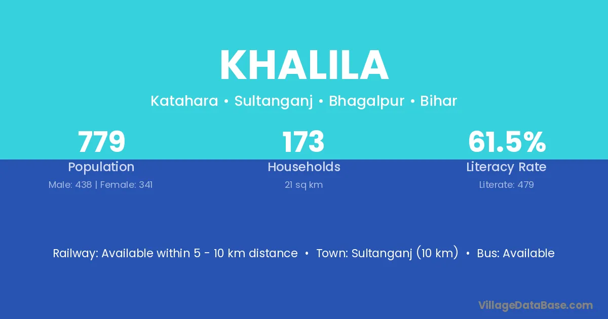 Sultanganj (10 km) is the nearest town to Khalila village for major economic activities and is located approximately 10 km away.