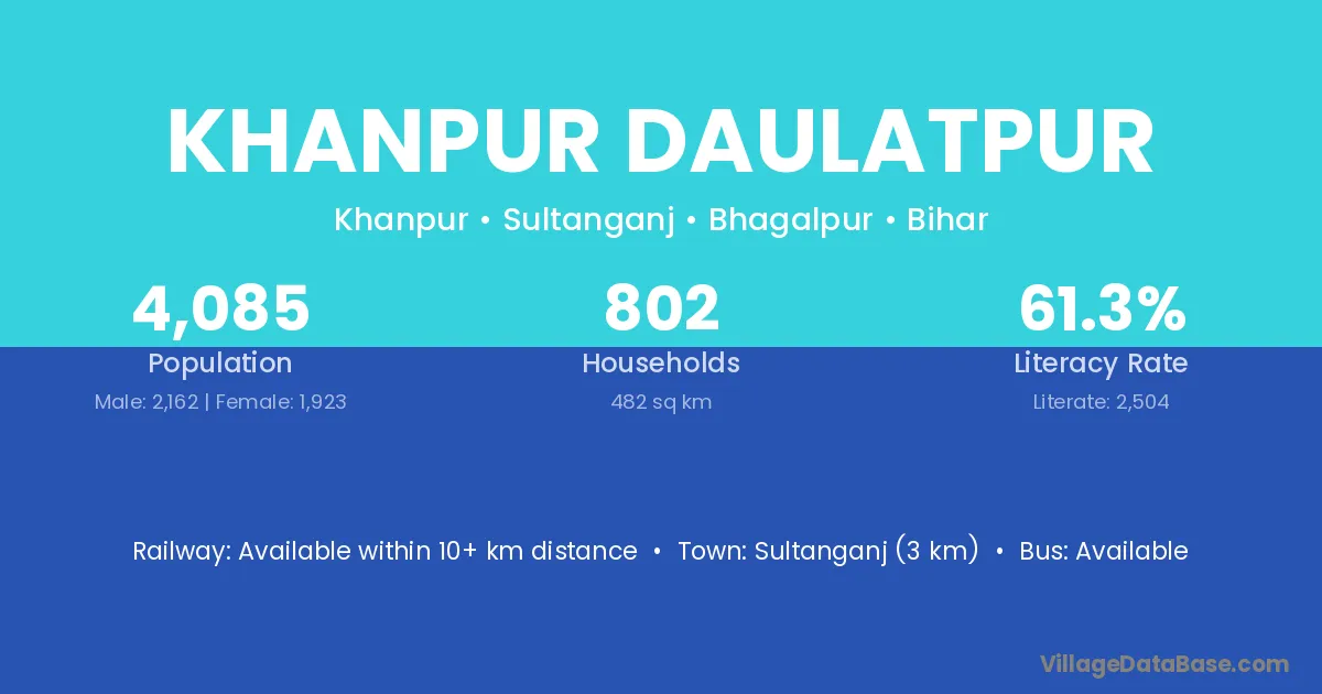 Sultanganj (3 km) is the nearest town to Khanpur Daulatpur village for major economic activities and is located approximately 3 km away.
