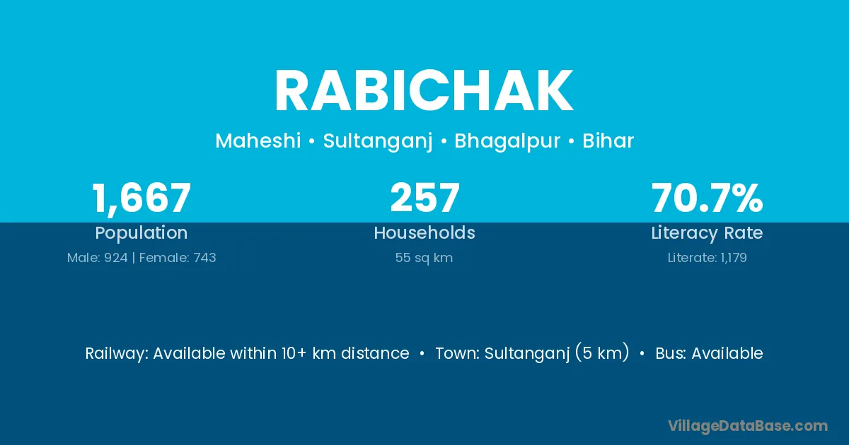 Sultanganj (5 km) is the nearest town to Rabichak village for major economic activities and is located approximately 5 km away.