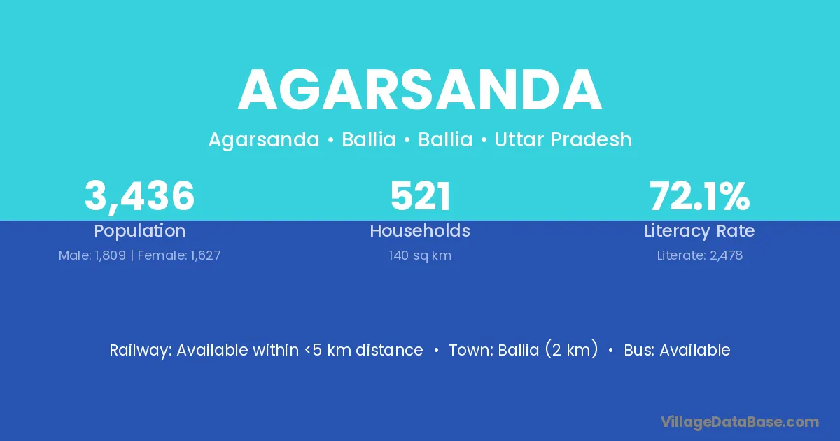 There are approximately 418 households in Agarsanda village.