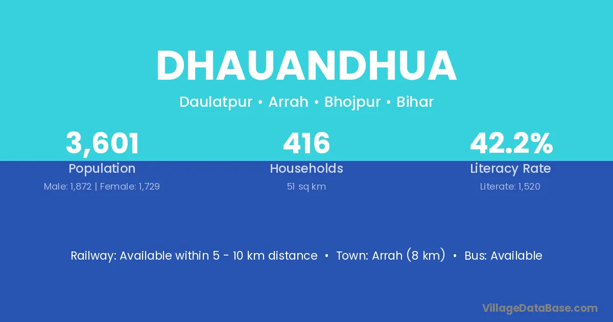 Arrah (8 km) is the nearest town to Dhauandhua village for major economic activities and is located approximately 8 km away.