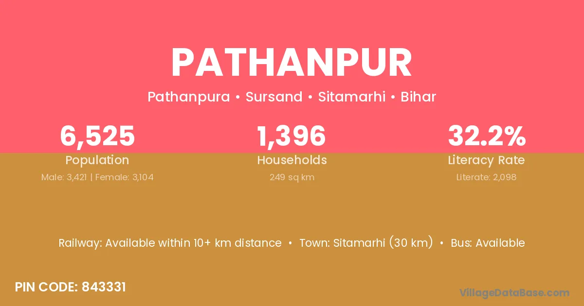 Arrah (13 km) is the nearest town to Pathanpur village for major economic activities and is located approximately 13 km away.
