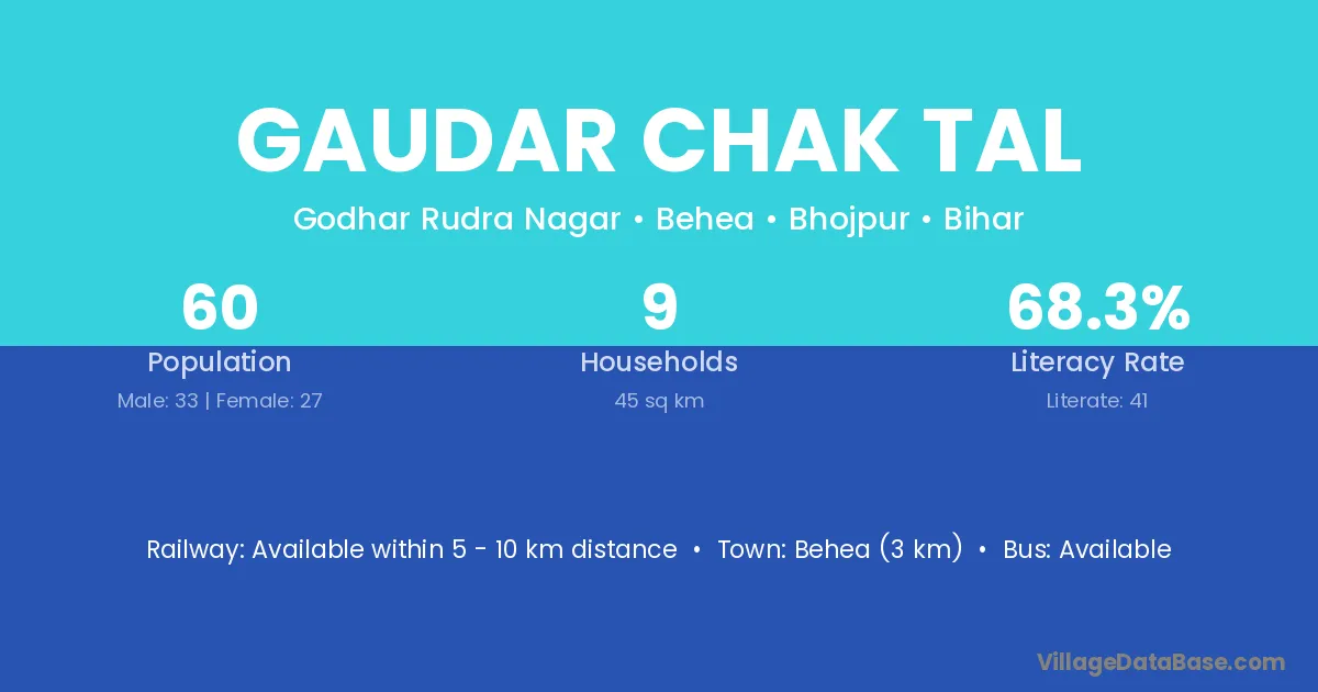 Behea (3 km) is the nearest town to Gaudar Chak Tal village for major economic activities and is located approximately 3 km away.