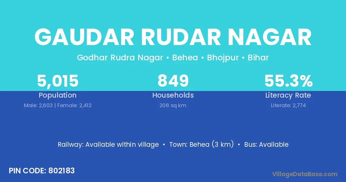 Behea (3 km) is the nearest town to Gaudar Rudar Nagar village for major economic activities and is located approximately 3 km away.