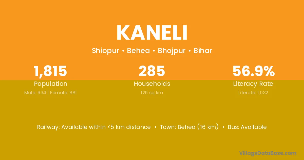 Behea (16 km) is the nearest town to Kaneli village for major economic activities and is located approximately 16 km away.