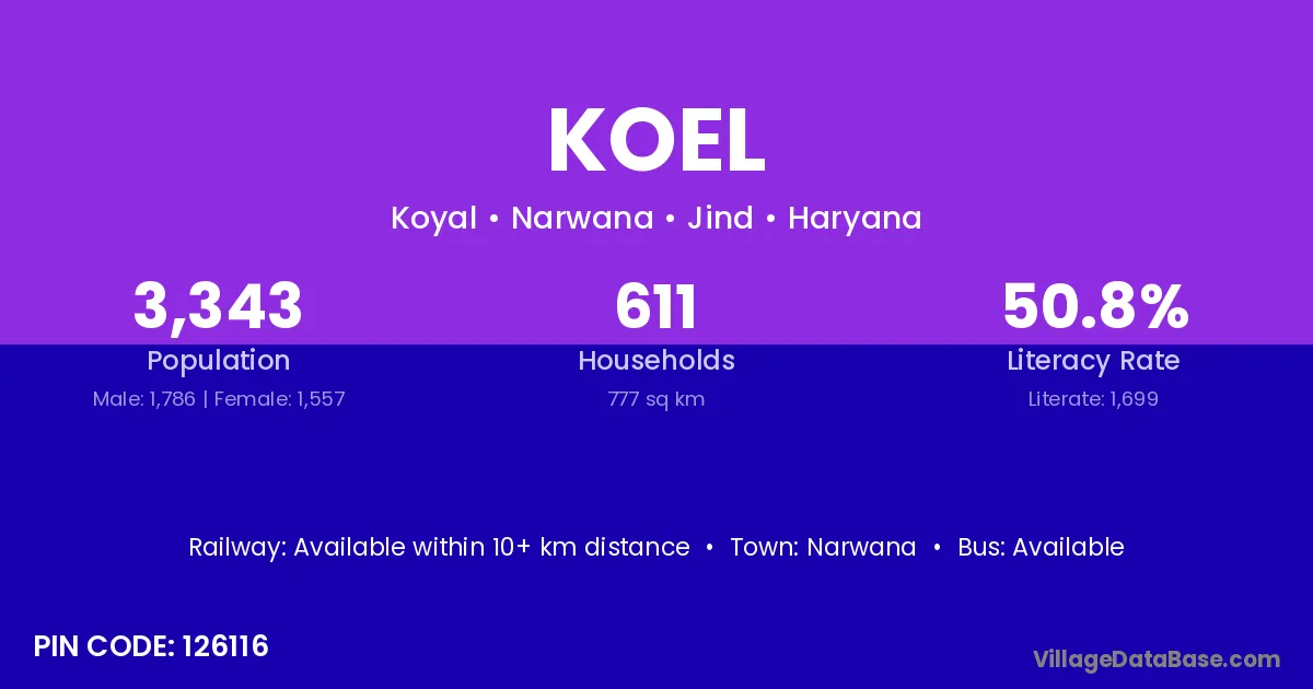 The literacy rate of Koel village is 53.66%. Male literacy stands at 65.95% and female literacy at 40.24%.