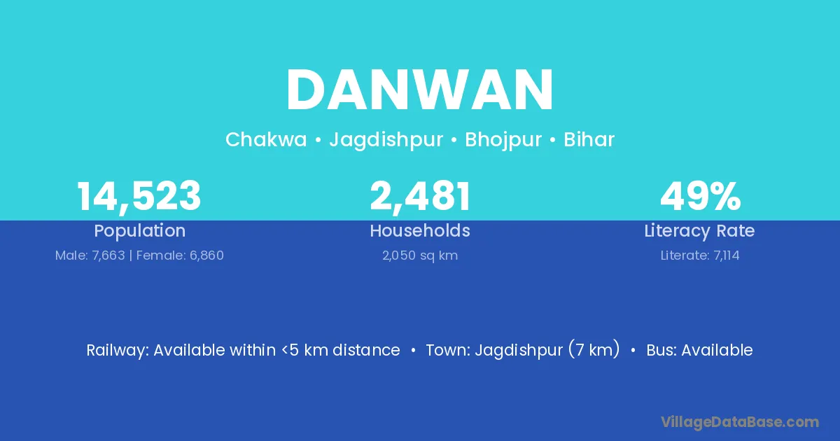 Jagdishpur (7 km) is the nearest town to Danwan village for major economic activities and is located approximately 7 km away.