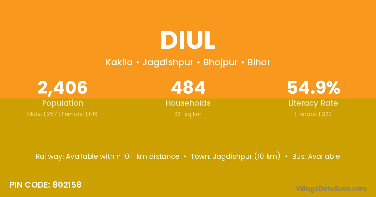 Jagdishpur (10 km) is the nearest town to Diul village for major economic activities and is located approximately 10 km away.