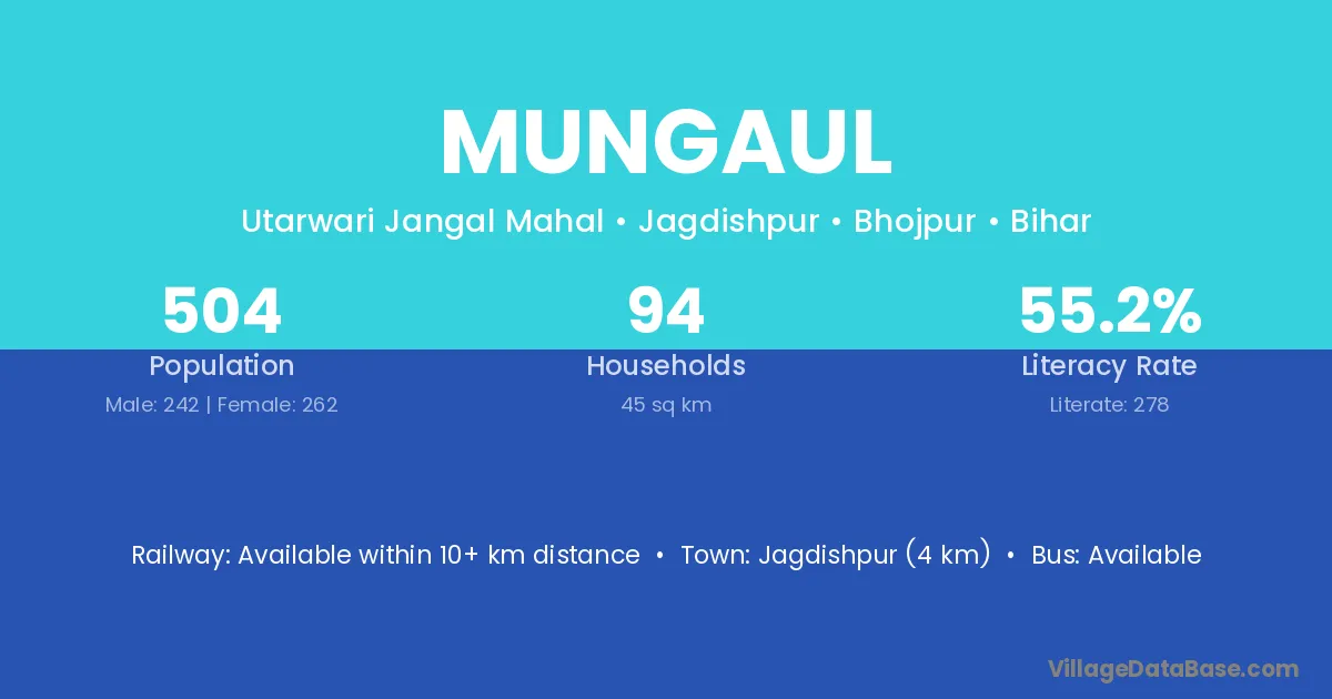 Jagdishpur (4 km) is the nearest town to Mungaul village for major economic activities and is located approximately 4 km away.