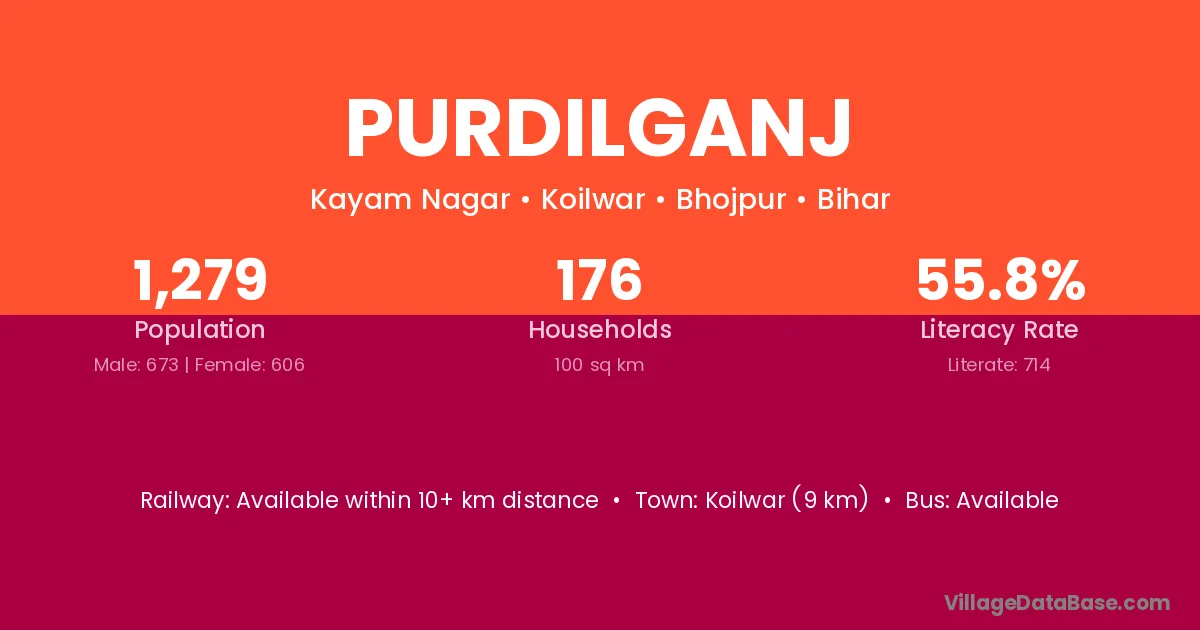 Koilwar (9 km) is the nearest town to Purdilganj village for major economic activities and is located approximately 9 km away.